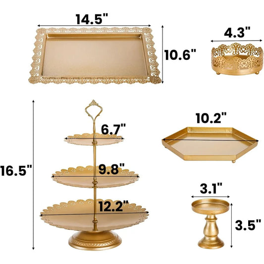 10 Piece- Vintage-style Gold Cake and Treats Stands/Displays, Platters