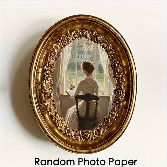 1pc 7.5inch Oval Victorian Antique Finish, Gold Flower Embossed Photo Frame