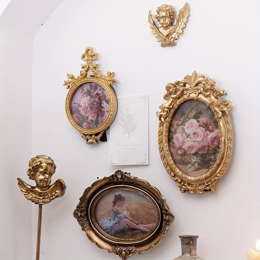 1pc 8.inch Vintage Gold Angel Oval Photo Frame, Victorian, Tabletop/Wall Hanging