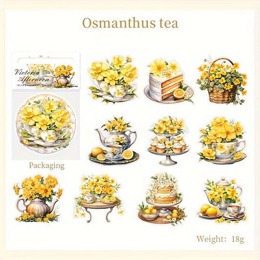 20 piece pack: Victorian Floral, Tea, Pastries- Sticker Decals: Scrapbook/Journal, DIY/Decor
