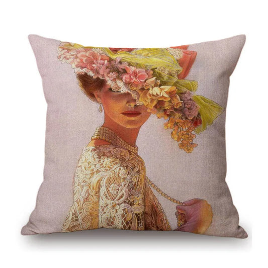 Elegant Lady With Hat Victorian Linen Sofa Throw Pillow Cover