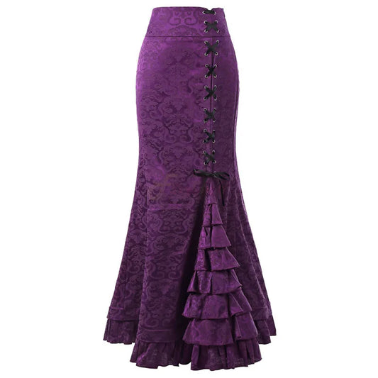Victorian-Retro Vintage Lace-Up Tiered Mermaid Skirt