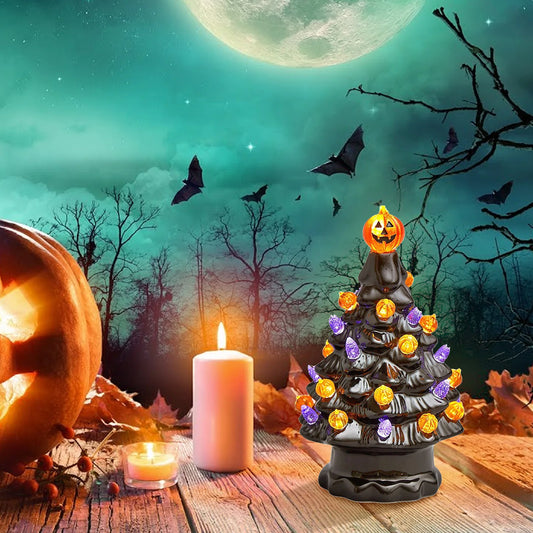Halloween-Pumpkins Ceramic LED Tree, Lighted Table Centerpiece
