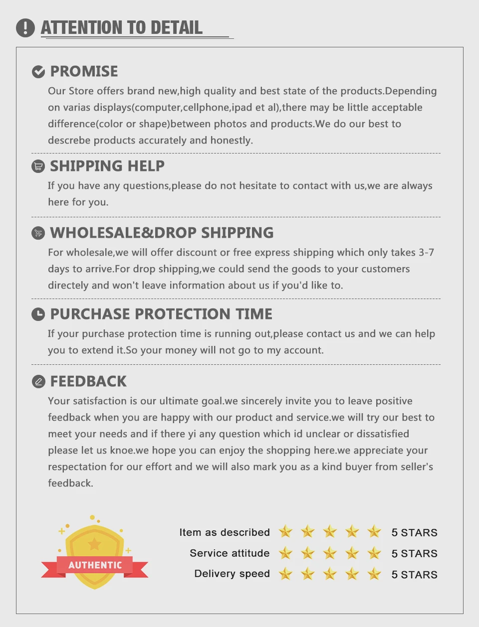We try our best to show real products. But please understand that the colors may still be a little different depending on the illustrations and screen effects.