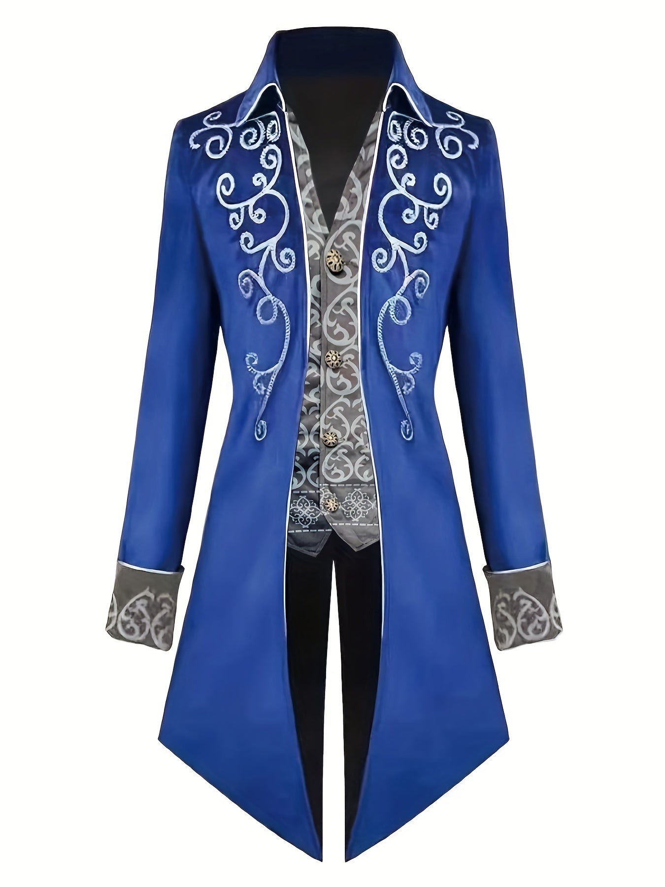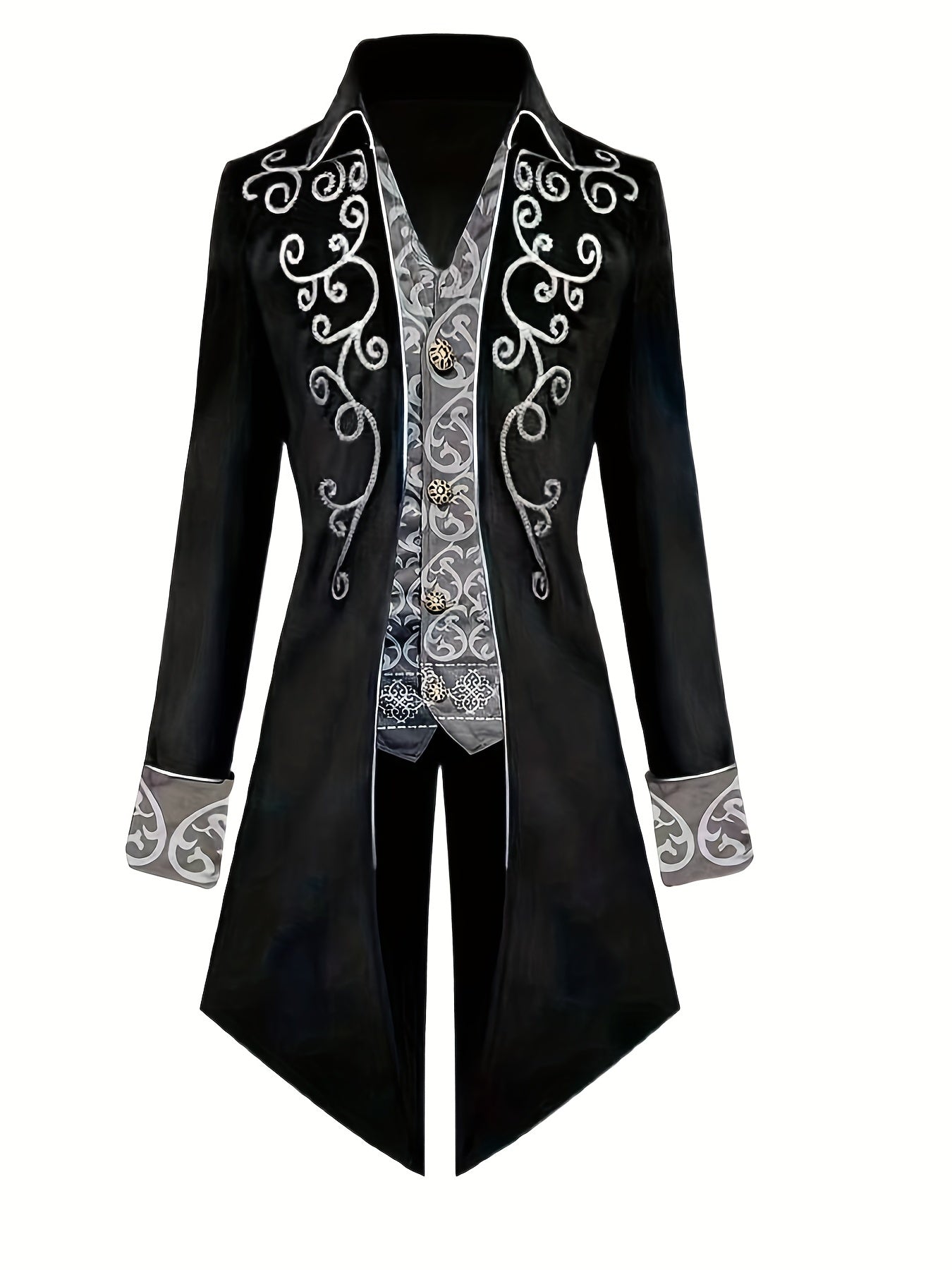 Elevate your wardrobe with this stunning Men's Steampunk Gothic Embroidered Victorian Jacket. This vintage tailcoat features a unique medieval frock coat design that blends classic elegance with modern style.