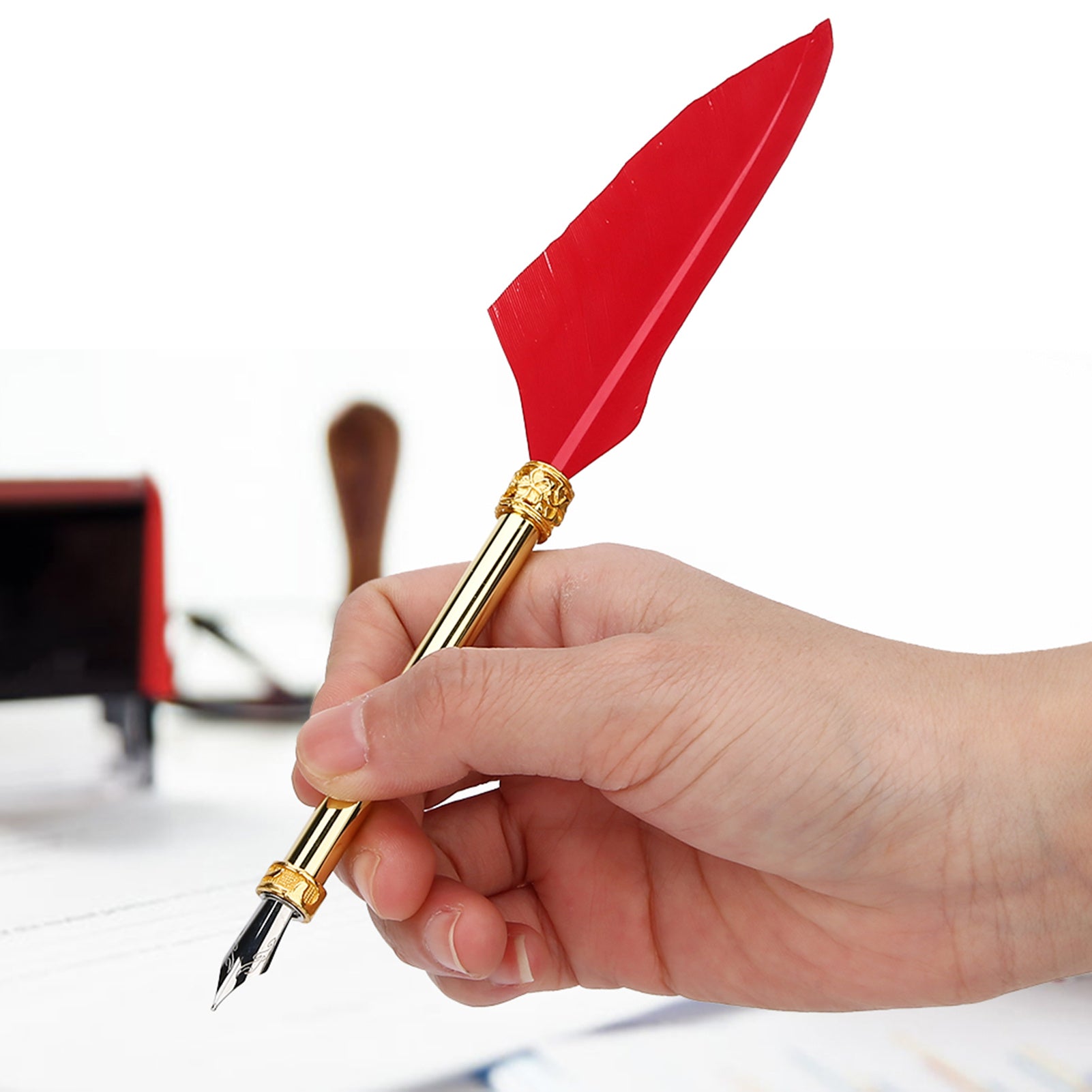 1、Metal material prevents rust, ensures durability, and light weight makes the pen comfortable to hold. 2、High-quality nibs provide excellent control and stable stability, and easy flowing of ink, convenient to use. 3、The feather pen looks unique and shiny, and the delicate feathers look beautiful and suitable for gift giving. 4、Calligraphy feather pen, suitable as a gift on Christmas, Thanksgiving, birthday and other important days. 5、It is a high-end gift for relatives, friends, students, colleagues, calligraphy lover and others.