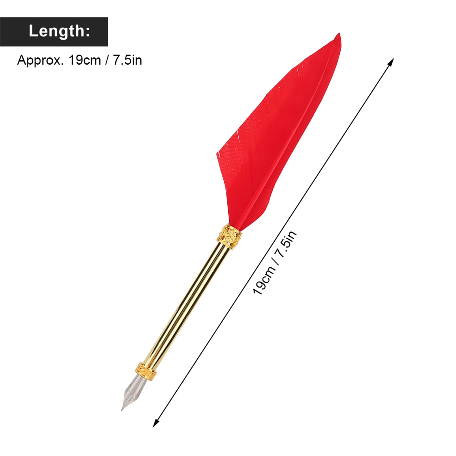 Condition: 100% Brand NewItem Type: Feather PenMaterial: Feather + Metal PenType: Red, Black, White (optional)Length: Approx. 19cm / 7.5inWeight: Approx. 91g / 3.2oz