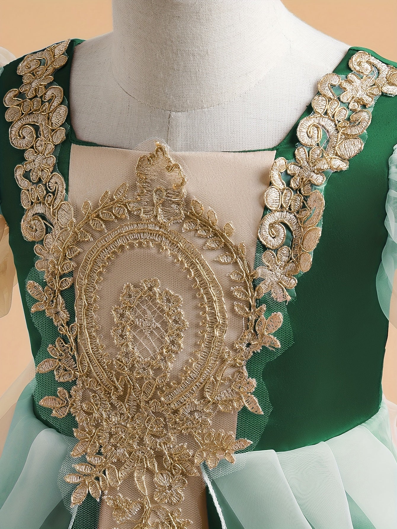 Vintage Style Flower Embroidery Princess Dress for Girls - Perfect for Parties and Photo Shoots