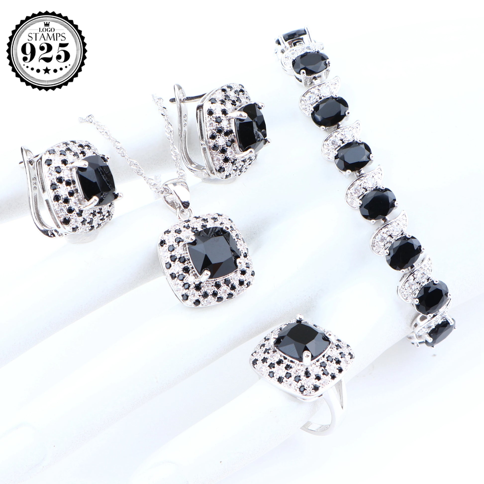 Elegant Silver 925 Jewelry Set with Black Zirconia