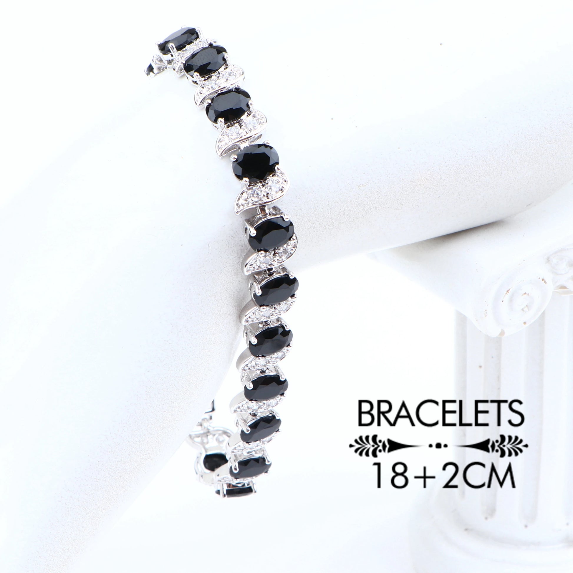 This luxurious jewelry set is made from high-quality Silver 925 and adorned with dazzling black zirconia stones, giving you a radiant look for any event. The complete set includes a necklace, earrings, bracelet, and ring, making it a versatile addition to your collection.